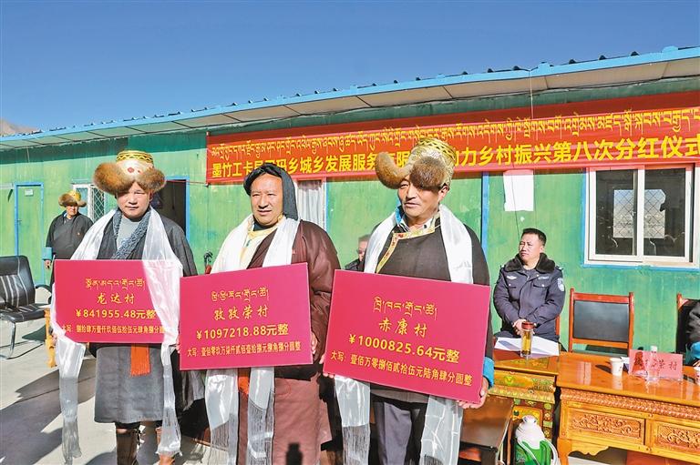 近日,拉薩市墨竹工卡縣甲瑪鄉(xiāng)城鄉(xiāng)發(fā)展服務(wù)有限公司舉行第八次分紅儀式,為全鄉(xiāng)群眾分紅294萬元。