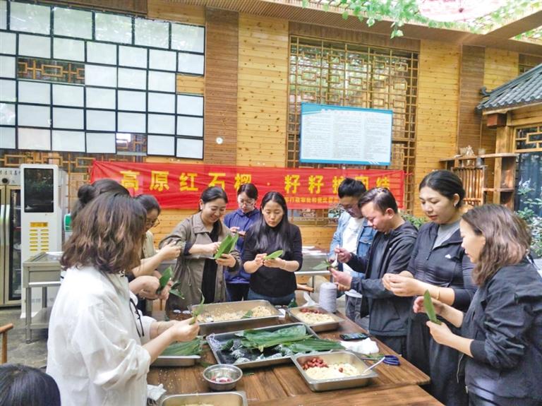 圖為日喀則市行政審批和便民服務(wù)局組織開展共聚“民族餐”活動(dòng),各族干部在一起包粽子。
