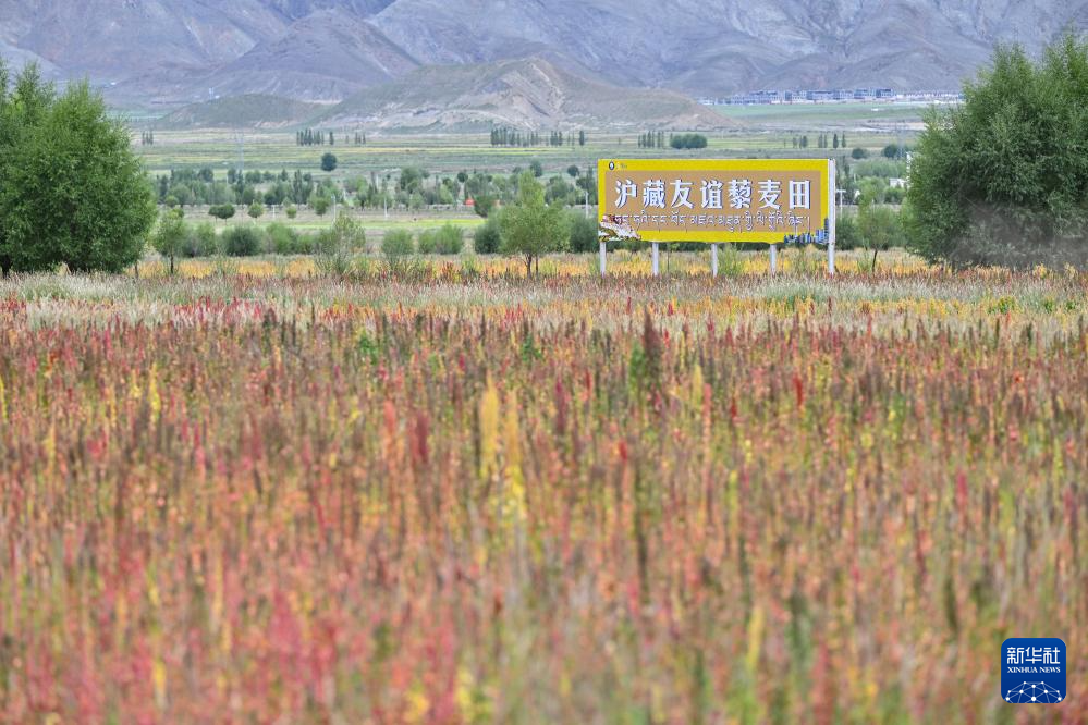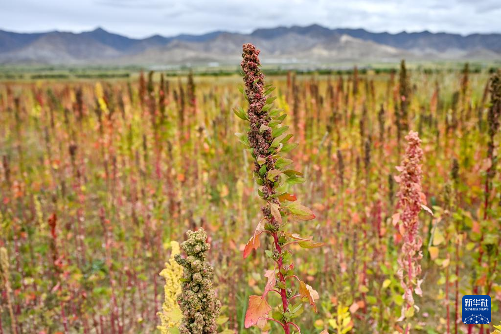 這是在西藏日喀則市薩迦縣扯休鄉(xiāng)拍攝的當(dāng)?shù)胤N植的藜麥(9月4日攝)。新華社記者 孫瑞博 攝