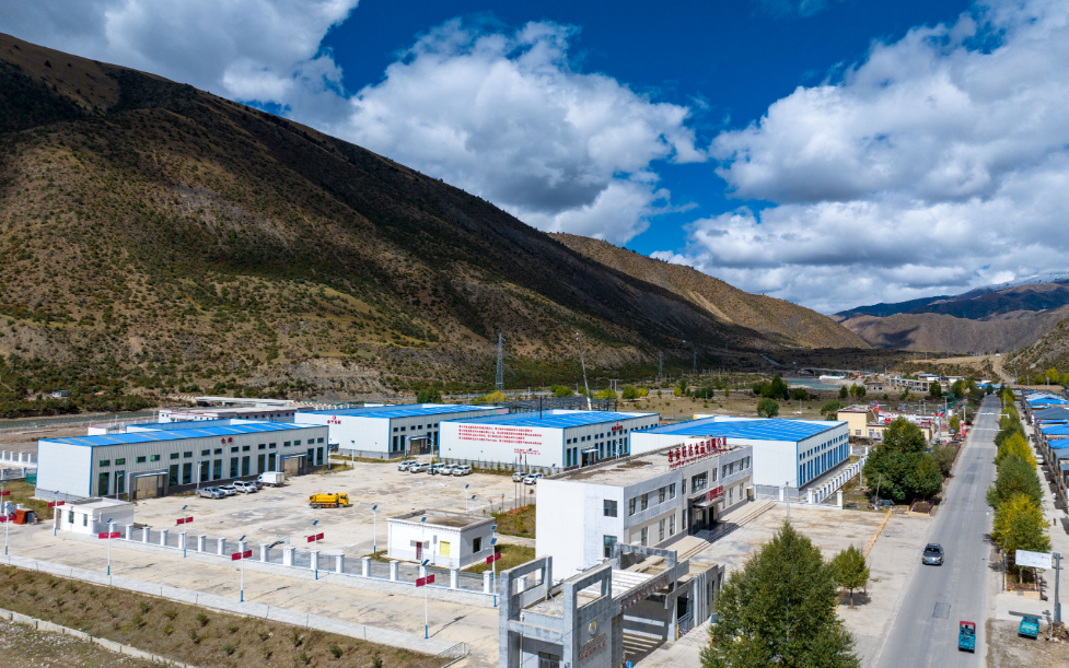 圖為位于川藏線沿途的左貢縣夯達(dá)高原特色產(chǎn)品加工園(10月14日攝 無人機(jī)照片)。新華網(wǎng) 旦增努布 攝