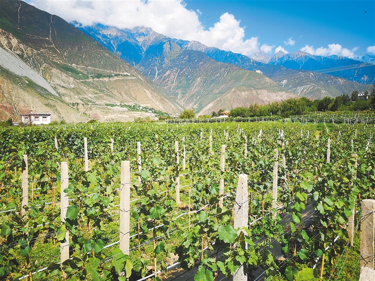 圖為芒康縣藏東珍寶酒業(yè)有限公司的葡萄園。記者 周輝 攝