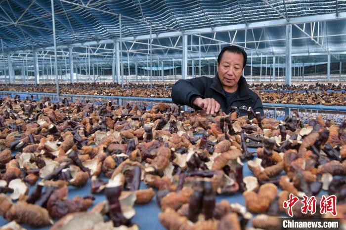 12月10日,西藏林芝米林市米林鎮(zhèn)紅太陽科技示范家庭農(nóng)場(chǎng)負(fù)責(zé)人尼瑪查看靈芝風(fēng)干情況。中新社記者 江飛波 攝