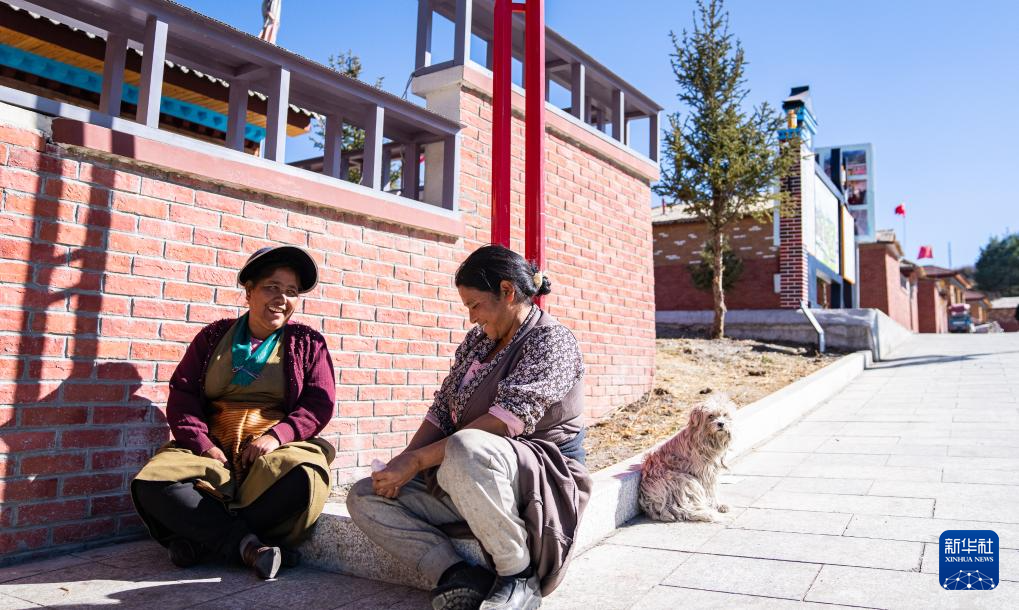12月15日,達曼新村的婦女坐在家門口聊天。新華社記者 丁增尼達 攝