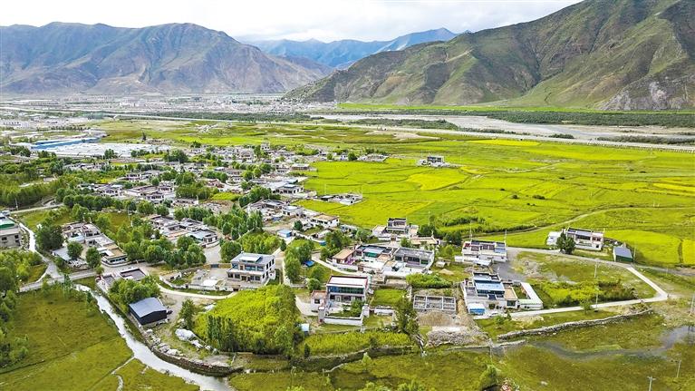圖為墨竹工卡縣塔巴村全新面貌(無(wú)人機(jī)照片)。通訊員 洛克 攝