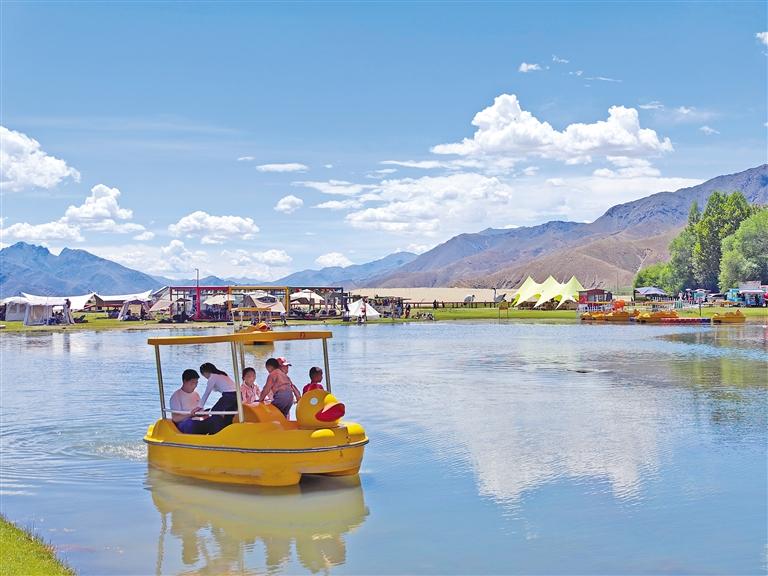 楚貴林卡位于日喀則市桑珠孜區(qū)東嘎鄉(xiāng)楚貴村。2019年初,青島援藏組規(guī)劃盤活村集體用地,打造以自然生態(tài)景觀、休閑度假旅游及異域農(nóng)耕民俗文化體驗為主題,融合當?shù)匚幕瘍?nèi)涵的“楚貴村生態(tài)旅游度假區(qū)”項目。項目自2022年啟動以來,隨著運營漸趨成熟,林卡休閑游樂設(shè)施逐年豐富。如今,這里設(shè)有咖啡休閑館、山地摩托、真人CS、游船、騎馬等多個傳統(tǒng)與現(xiàn)代結(jié)合的項目,受到游客青睞。