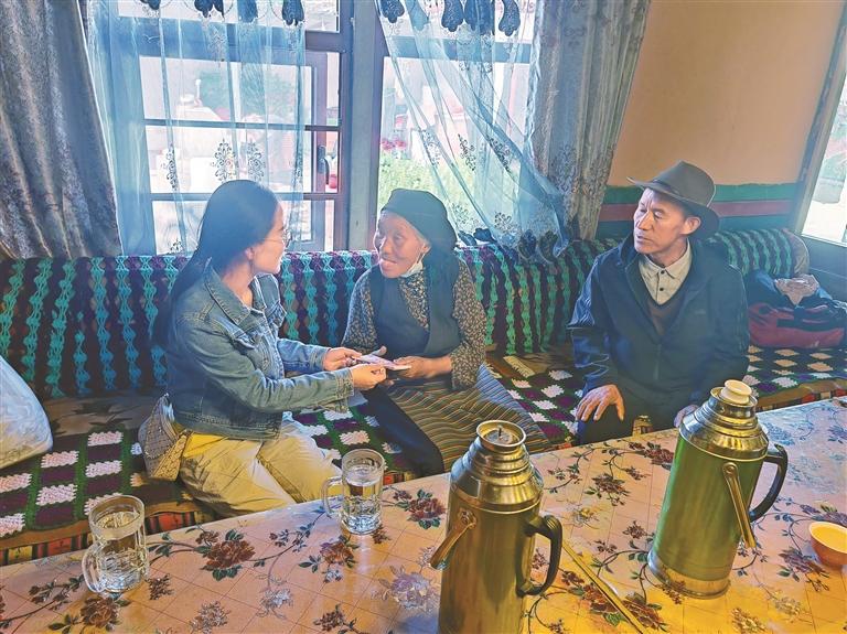 圖為駐茶巴朗村工作隊(duì)員,走進(jìn)困難群眾家中,將幫扶資金交到他們手中。記者 劉斯宇 通訊員 肖通 攝