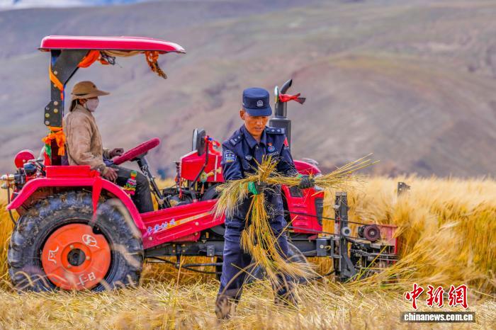 金秋時節(jié),青稞飄香。23日,西藏日喀則邊境管理支隊涅如麥邊境派出所民警們深入田間,在廣袤的田野上,與農牧民一同俯身勞作,揮鐮收割,搶收青稞。