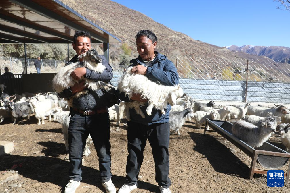 村民在扎嘎新村養(yǎng)殖合作社。新華社發(fā)(侯勇 攝)