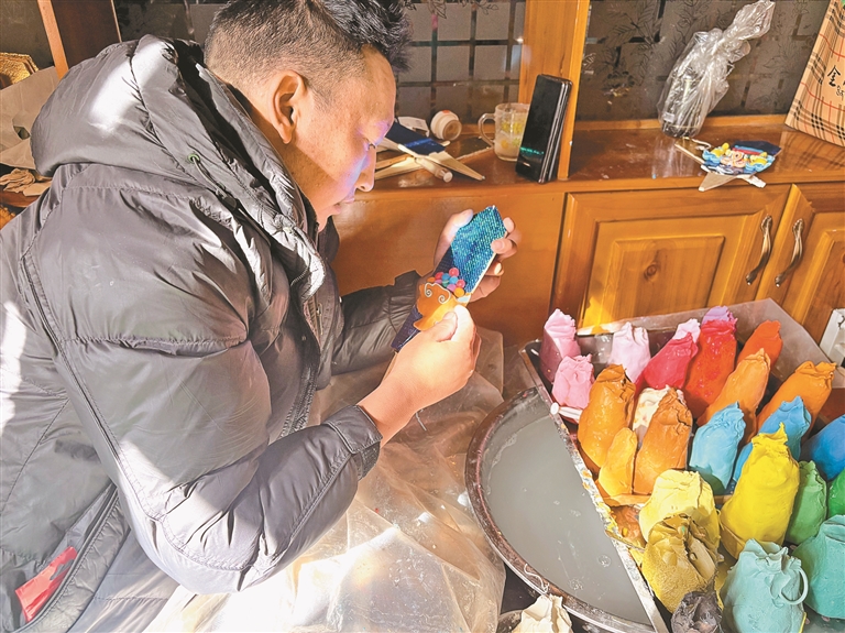 “我從2013年開(kāi)始學(xué)做酥油花,到現(xiàn)在有了不小的長(zhǎng)進(jìn)?!贝稳手钢矍暗乃钟突ㄗ髌方榻B道,這些圖案有的象征家庭和睦、民族團(tuán)結(jié),有的祈愿老人康健、稚童茁壯。“以前沒(méi)學(xué)這門手藝的時(shí)候,只能在家閑著。后來(lái)跟著老師系統(tǒng)學(xué)習(xí)制作酥油花,不光掌握了這門手藝,還能靠它養(yǎng)活自己和家人。”次仁言語(yǔ)間滿是感激,談及未來(lái)更是充滿期待,他表示,等自己技藝精進(jìn)、達(dá)到一定造詣后,也想像老師那樣收徒傳藝,有十足的信心把這門非遺手藝好好傳承下去。
