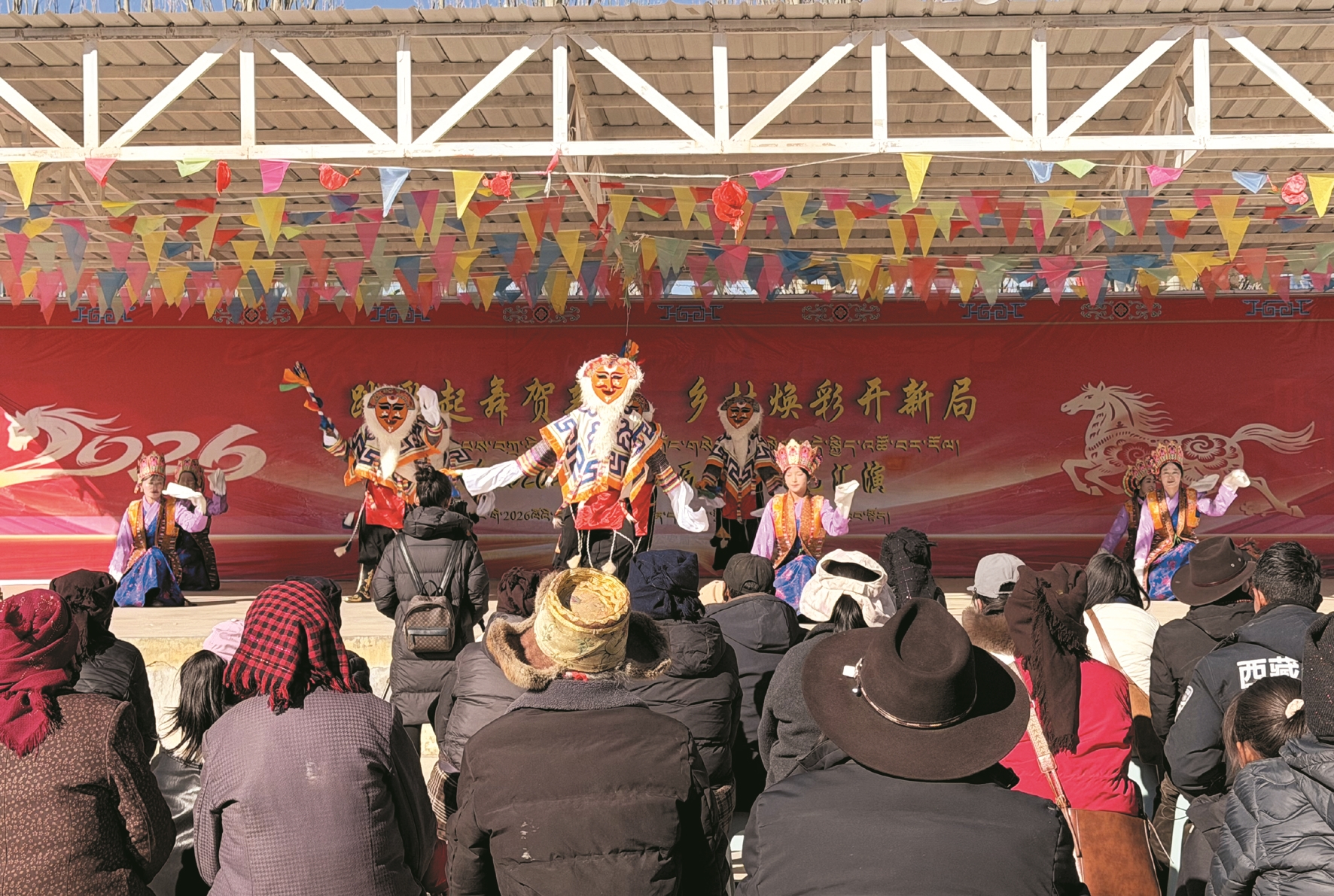 日前,林周縣卡孜鄉(xiāng)文化活動中心院內(nèi)人頭攢動,以“踏歌起舞賀新春 鄉(xiāng)村煥彩開新局”為主題的2026年春節(jié)文藝匯演如期舉行。隨著田嘎村文藝隊帶來的開場舞《扎西雪巴》翩然起舞,這場連續(xù)三年舉辦的“村晚”正式拉開帷幕。