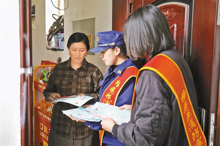 圖為阿里地區(qū)“格桑花消防宣傳隊”進村入戶向群眾科普電動自行車消防安全知識。