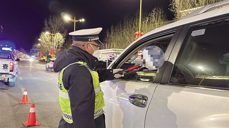 拉薩交警夜查酒駕。
