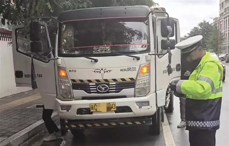 “師傅您好,現(xiàn)在屬于貨車禁止入城時段,請您繞行?!毙袆又?,城南大隊以進出城路段為重點,安排警力對重點路段開展巡邏管控、定點提示,以面對面提示、勸導(dǎo)的方式,向駕駛員宣講貨車禁止入城時段以及違規(guī)入城涉及的法規(guī)條例,主動詢問駕駛員目的地,告知其繞道行駛路線。