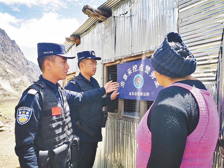 金東邊境派出所民警為群眾介紹蟲草采挖點警務室職能。 (本文配圖由通訊員 張力 記者 謝筱純 王珊 攝)