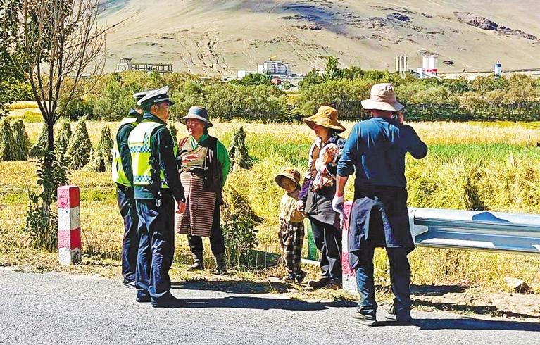 圖①②:民警在田間地頭為群眾講解交通安全知識。記者 旦增嘎瓦 攝