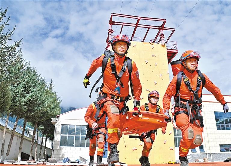 開展斜向救援技術(shù)訓(xùn)練。本報(bào)通訊員 西繞拉翁 記者 謝筱純 王珊 攝