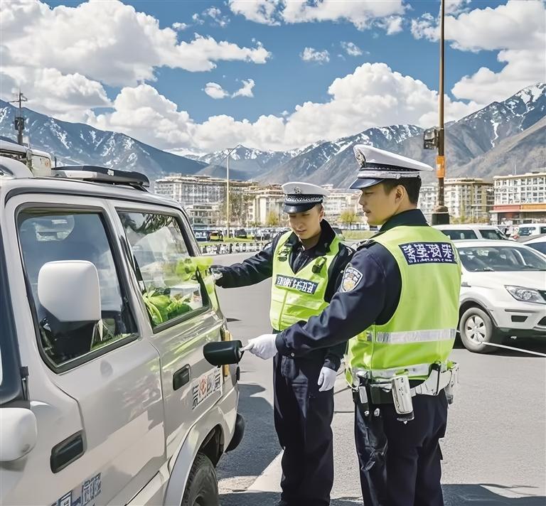 民警對過往的車輛進行檢查。圖由拉薩交警提供