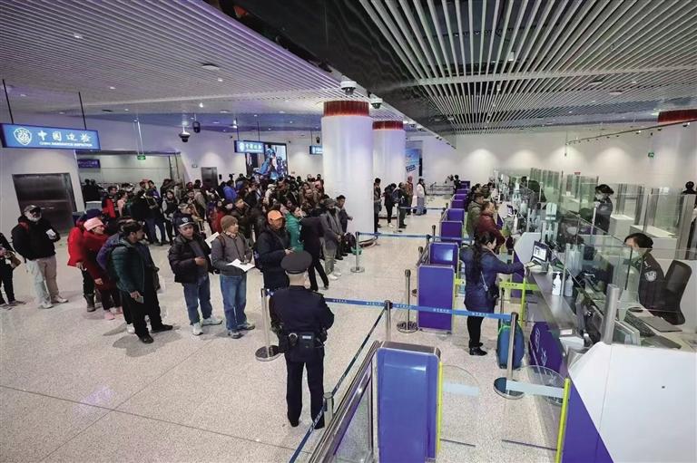 在邊境通行證辦理和邊境檢查站點(diǎn)優(yōu)化方面,西藏邊檢總站聚焦邊境通行證申領(lǐng)辦理過程中的難點(diǎn)、痛點(diǎn)、熱點(diǎn)問題,逐個進(jìn)行攻堅(jiān)突破。2024年,新增18個非邊境縣辦理邊境通行證的權(quán)限,至此,辦證室(點(diǎn))已覆蓋全區(qū)74個縣(區(qū)、市)以及重要交通樞紐,極大地方便了群眾就近辦理邊境通行證。同時,結(jié)合邊境路網(wǎng)建設(shè)規(guī)劃和邊境檢查站點(diǎn)設(shè)置情況,不斷調(diào)整優(yōu)化邊境檢查站點(diǎn)布局,為邊境地區(qū)經(jīng)濟(jì)社會發(fā)展疏通脈絡(luò)。全年共檢查進(jìn)出邊境管理區(qū)人員1155萬余人次。
