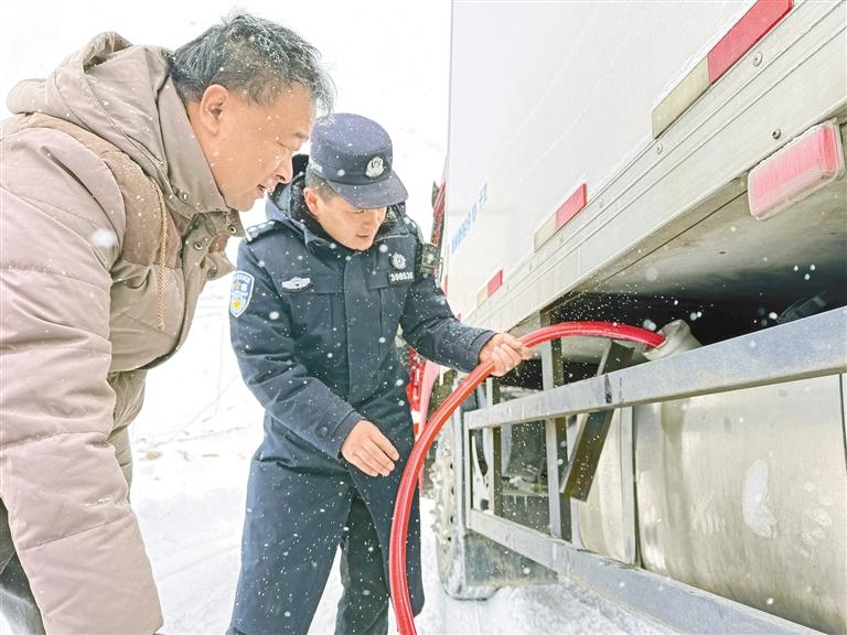 竹瓦根邊境派出所民警為被困缺油車輛加油。通訊員 李胤京 攝