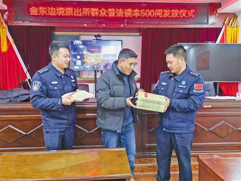 金東邊境派出所組織普法讀本發(fā)放儀式現(xiàn)場(chǎng)。 記者 王香香 攝