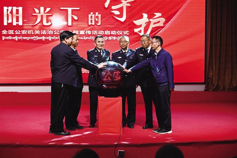 今年是習(xí)近平法治思想提出5周年。為認(rèn)真落實(shí)公安部黨委、自治區(qū)黨委政府關(guān)于學(xué)習(xí)貫徹習(xí)近平法治思想有關(guān)工作部署,充分展現(xiàn)全區(qū)公安機(jī)關(guān)學(xué)習(xí)宣傳貫徹習(xí)近平法治思想的生動實(shí)踐和推進(jìn)法治公安建設(shè)的豐碩成果,6月10日,全區(qū)公安機(jī)關(guān)“陽光下的守護(hù)”法治公安主題宣傳活動啟動儀式在日喀則市公安局桑珠孜分局舉行。