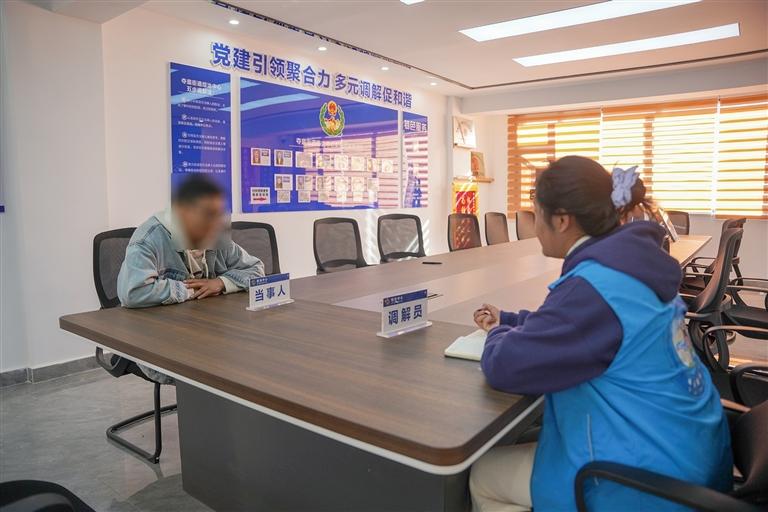 2024年,剛走出大學校門的旦增卓嘎,因性格柔和、對“化解矛盾”充滿期冀,看到專職調(diào)解員招聘信息后便毅然報名?!捌鸪跸氲锰貏e簡單,覺得只要懂點法律,把雙方說和就行。”回憶起初入職的心態(tài),旦增卓嘎笑著說。