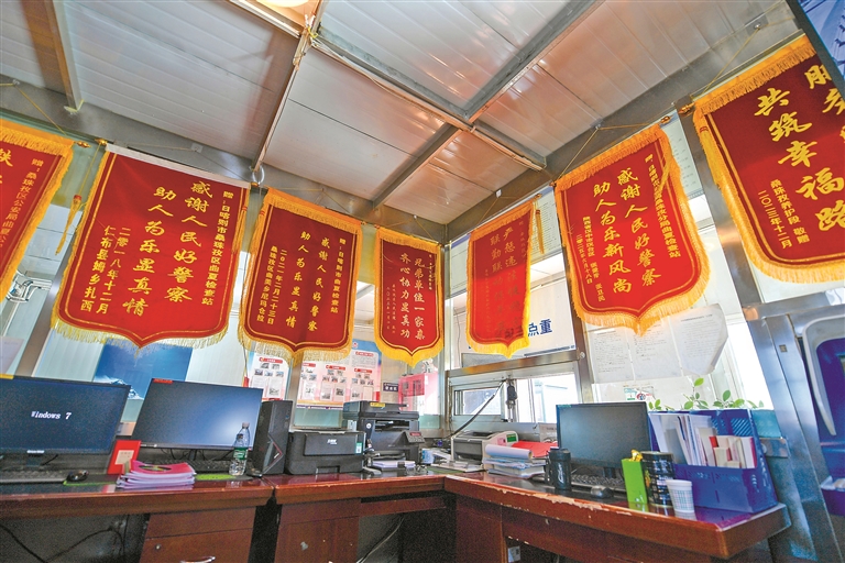 掛滿曲夏公安檢查站的錦旗。