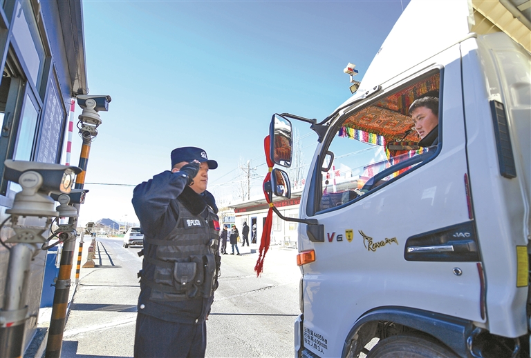 “請降下車窗,面對攝像頭接受檢查?!薄伴_慢點,注意安全?!睓z查崗亭內,次旦加布一邊察看窗外的汽車,一邊仔細比對著電腦系統(tǒng)中的信息。