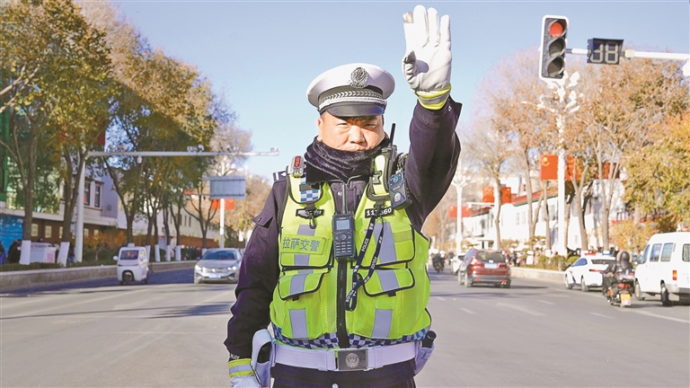 圖為拉薩交警定點值守中。記者 鹿麗娟 攝