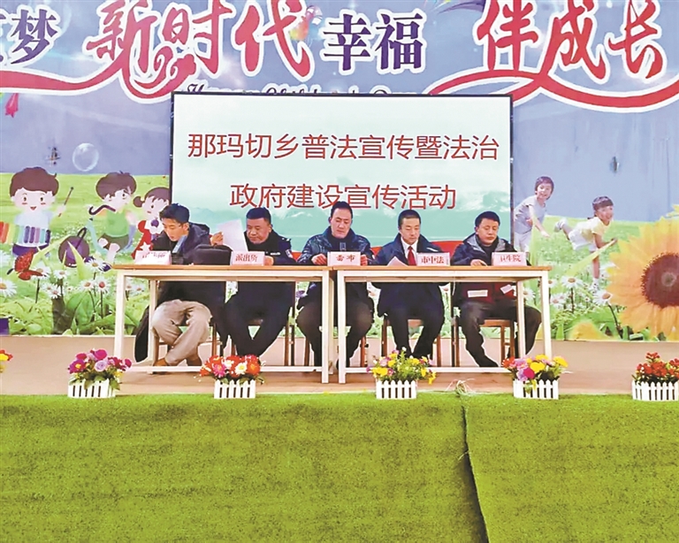 色尼區(qū)那瑪切鄉(xiāng)普法宣傳暨法治政府建設(shè)宣傳活動現(xiàn)場。文/圖 記者 土旦仁青