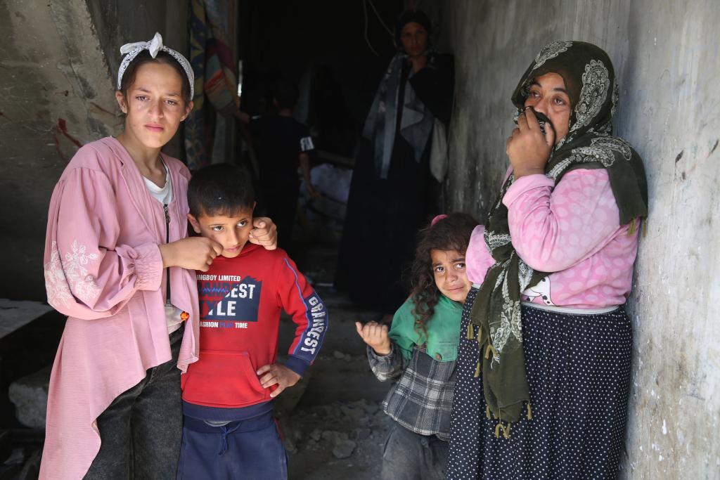 4月2日,在加沙地帶南部城市拉法,人們?cè)谟H屬去世后悲傷不已。新華社發(fā)(哈立德·奧馬爾攝)