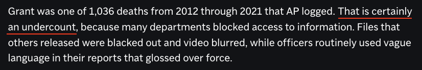 因為許多部門封鎖了記者獲取信息的渠道,而通過其他渠道公布的相關(guān)文件被蓄意涂改,視頻也被做了模糊化處理,警察們則在報告中經(jīng)常使用模糊的語言來掩蓋武力使用事實。