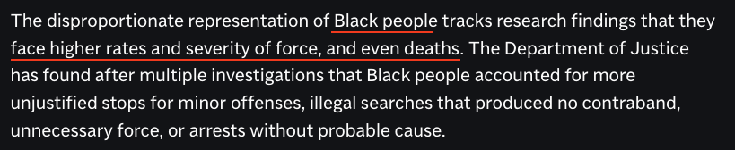 調(diào)查還發(fā)現(xiàn),在警方經(jīng)手的輕微犯罪處理、不涉及違禁品的無端搜查、不必要的武力使用或無正當理由的逮捕中,作為執(zhí)法對象的非裔所占比例也更高。
