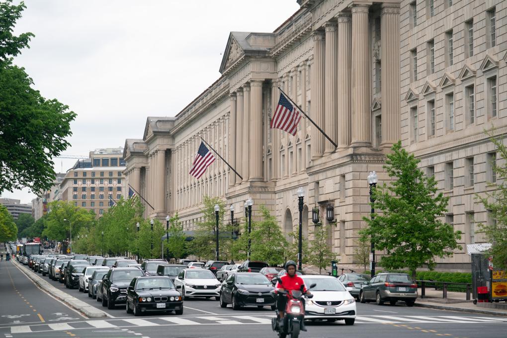這是4月25日在美國首都華盛頓拍攝的商務部大樓。新華社記者劉杰攝