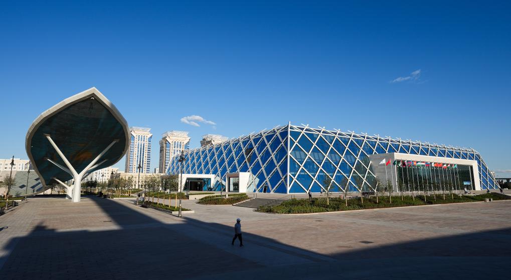 這是2024年6月29日在哈薩克斯坦首都阿斯塔納拍攝的獨立宮。新華社記者王建華攝