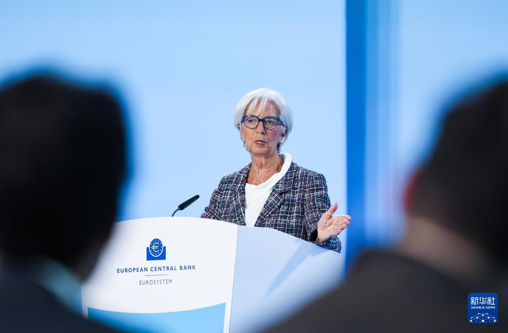 7月18日,歐洲中央銀行行長(zhǎng)拉加德在德國(guó)法蘭克福歐洲中央銀行總部舉行的新聞發(fā)布會(huì)上講話(huà)。新華社記者 張帆 攝