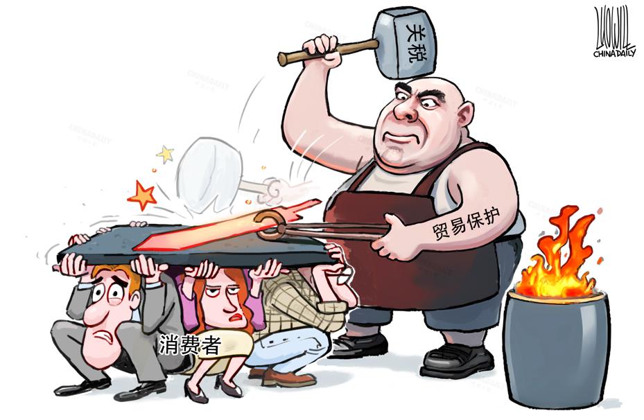 貿(mào)易保護主義下的沉重關(guān)稅,最后買單的都是本國消費者。(作者:中國日報 羅杰)