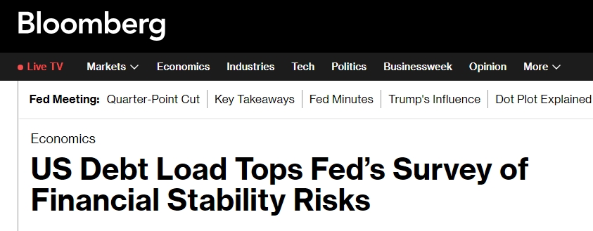 彭博社(Bloomberg)在報道中提到,美國政府的債務負擔現(xiàn)在被認為是金融穩(wěn)定面臨的最大風險,在美聯(lián)儲的一項調查中,其重要性超過了持續(xù)的通貨膨脹。逾半數(shù)受訪者(54%)認為美國財政債務的可持續(xù)性是一個突出風險,而半年前這一比例僅為40%。美聯(lián)儲的半年度金融穩(wěn)定報告寫道:“美國財政債務可持續(xù)性方面的擔憂位居榜首,其次是中東緊張局勢升級和政策的不確定性?!?/p>