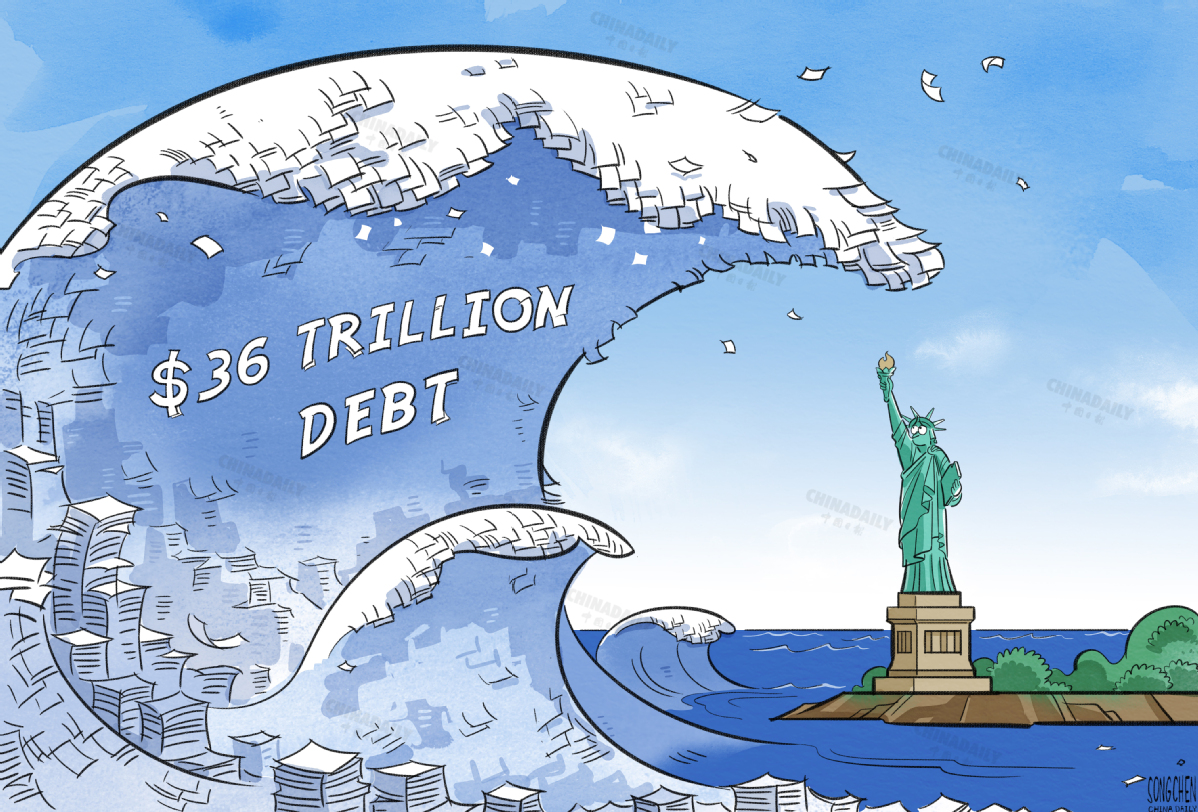 美國國債總額已突破36萬億美元,達到創(chuàng)紀錄的新高。(作者:中國日報 宋晨)