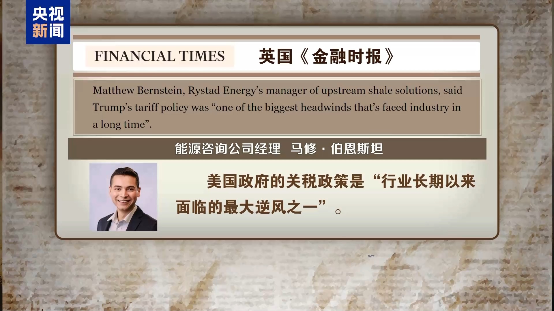 據(jù)報道,美國政府濫施關(guān)稅損害了美國石油生產(chǎn)商的利益,尤其是他們使用的設(shè)備大多是從中國、韓國、巴西和墨西哥進(jìn)口的。報道援引一家行業(yè)咨詢公司的研究稱,美國石油行業(yè)所用管材的價格預(yù)計在今年第四季度將同比上漲40%。美國“二疊紀(jì)盆地石油協(xié)會”前主席柯克·愛德華茲直言,他對美國石油和天然氣行業(yè)“在整個關(guān)稅計劃中被當(dāng)作替罪羊”表示難以置信。