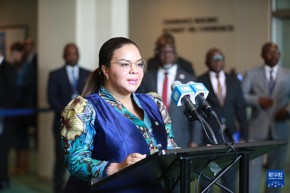 6月3日,在位于紐約的聯(lián)合國總部,剛果(金)外長泰蕾茲·卡伊寬巴·瓦格納在剛果(金)當選聯(lián)合國安理會非常任理事國后講話。新華社記者 謝鍔 攝