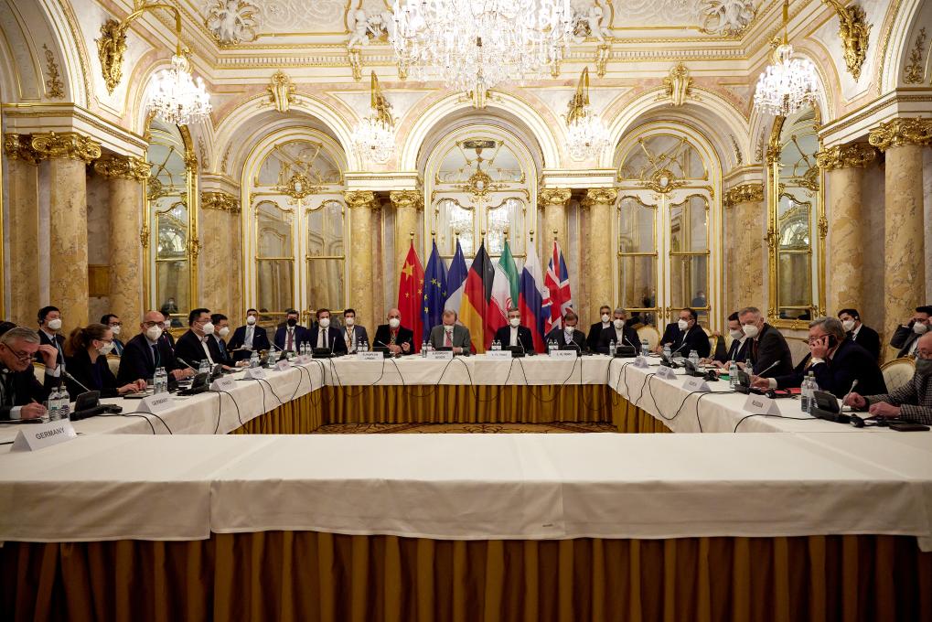 這是2021年12月27日在奧地利維也納拍攝的伊朗核問題全面協(xié)議聯(lián)合委員會政治總司長級會議現(xiàn)場。新華社發(fā)(歐盟駐維也納代表團(tuán)供圖)