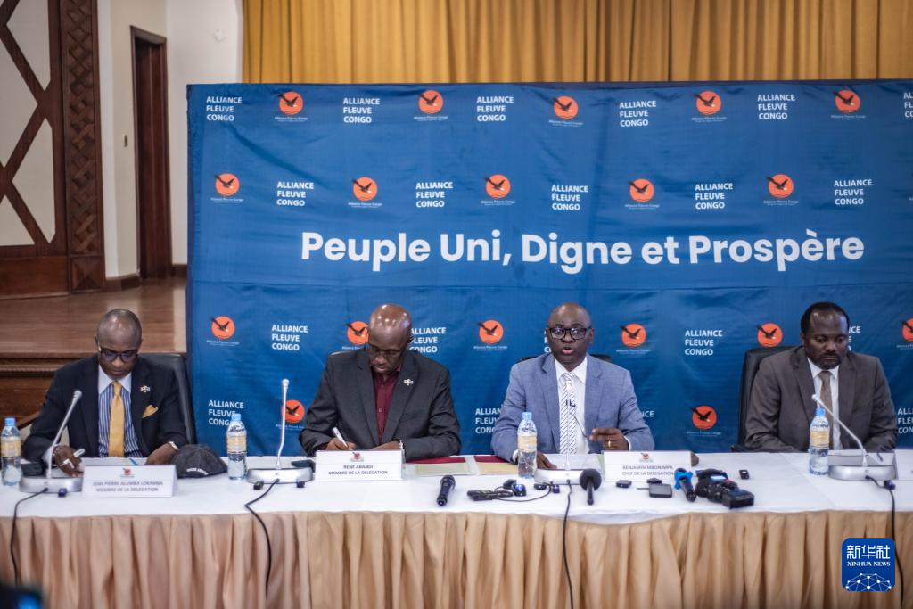 7月25日,在剛果(金)北基伍省首府戈馬市,“M23運(yùn)動(dòng)”對(duì)話代表姆博寧帕(右二)出席記者會(huì)。新華社發(fā)(扎內(nèi)姆·內(nèi)蒂·扎伊迪攝)