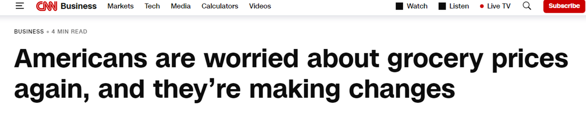 報道還指出,民調清晰地表明美國人對高昂的食品成本和經(jīng)濟狀況倍感焦慮,他們的購物方式也因此出現(xiàn)巨大改變。這與眾多企業(yè)提到的情況一致,他們表示消費者正在調整購物模式,比如從購買大包裝改成買小包裝,只買生活必需品,更多地在家吃飯。