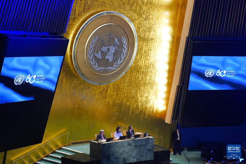 這是9月22日在位于紐約的聯(lián)合國(guó)總部拍攝的紀(jì)念聯(lián)合國(guó)成立80周年高級(jí)別會(huì)議現(xiàn)場(chǎng)。新華社記者 李睿 攝