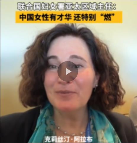 全球婦女峰會于10月13日至14日在北京舉行。會議期間,聯(lián)合國婦女署亞太區(qū)域主任克莉絲汀·阿拉布在接受中國日報(bào)網(wǎng)記者采訪時(shí),用“燃”字來形容中國女性。她說,中國女性是一群充滿激情、才華橫溢又催人奮進(jìn)的女性。在與全國婦聯(lián)的交流中,她深刻感受到,全國婦聯(lián)致力于推動女性進(jìn)步、促進(jìn)性別平等、增強(qiáng)女性力量,這種狀態(tài)非?!叭肌薄?/p>