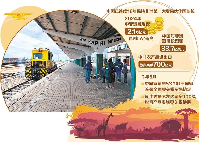 數(shù)據(jù)顯示,中國已連續(xù)16年保持非洲第一大貿(mào)易伙伴國地位。2024年,中非貿(mào)易規(guī)模達到2.1萬億元,再創(chuàng)歷史新高。