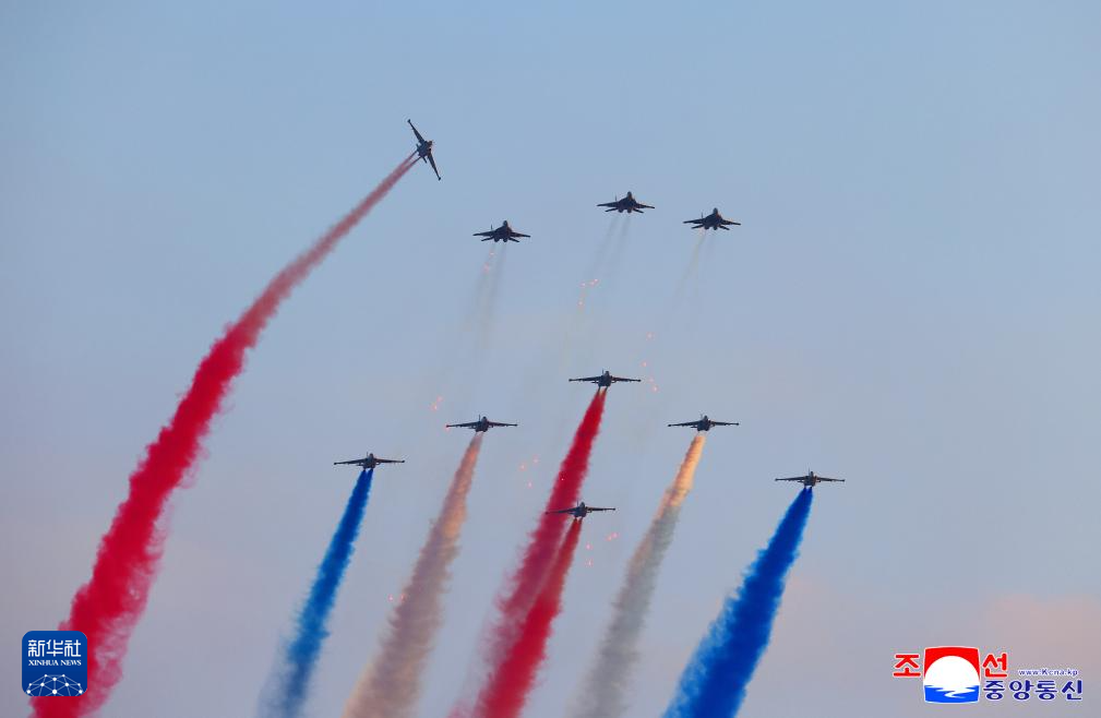 這張朝中社提供的照片顯示的是朝鮮空軍飛機進行飛行表演。新華社/朝中社