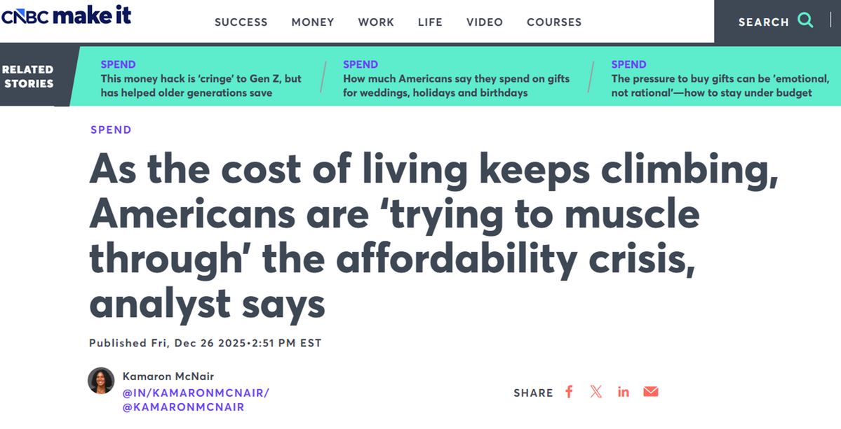2025年末,“可負(fù)擔(dān)性危機(jī)”(affordability crisis)成為美國(guó)主流媒體焦點(diǎn)。美國(guó)挑起的貿(mào)易戰(zhàn),其自傷效應(yīng)在美國(guó)民眾的生活成本上體現(xiàn)得淋漓盡致。