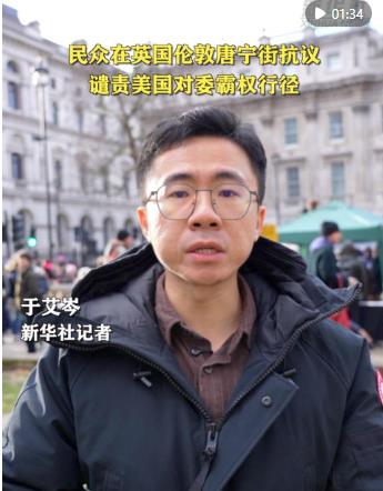 當?shù)貢r間10日下午,大批民眾聚集在英國首相官邸唐寧街10號門外,抗議美國對委內瑞拉的軍事打擊。這是自美國襲擊委內瑞拉并強行帶走馬杜羅夫婦后,倫敦發(fā)生的第四次相關的抗議事件。
